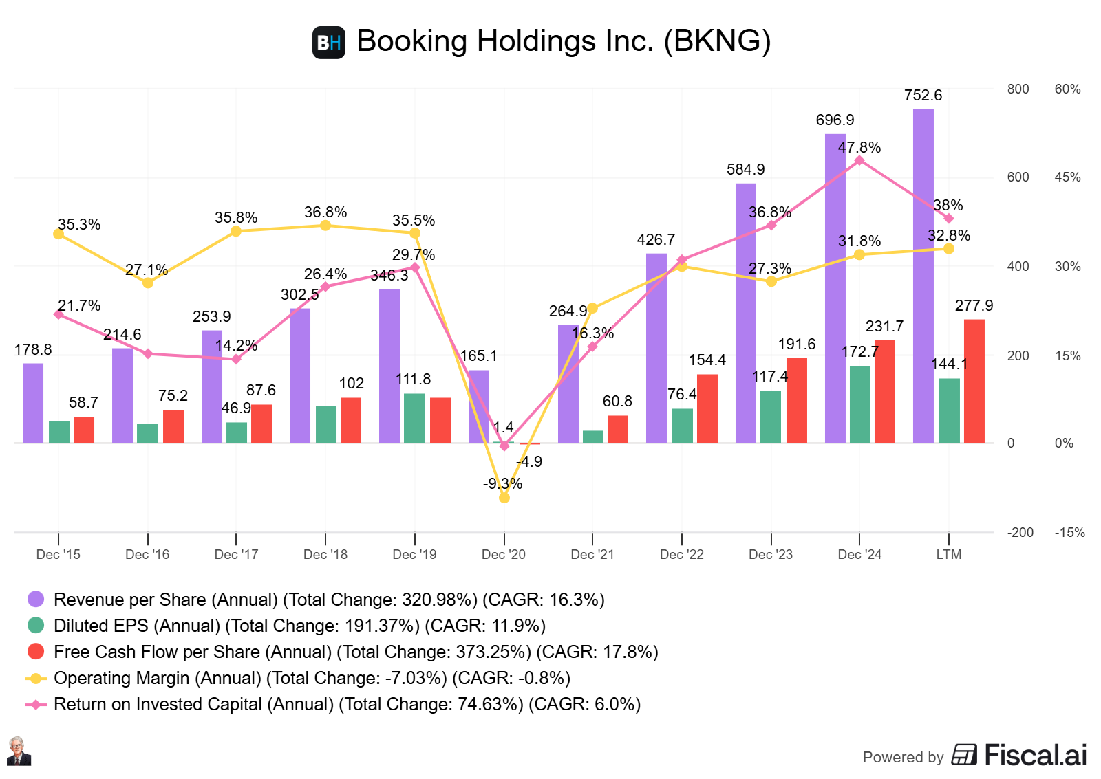 Through technology, data, and network effects, Booking has turned the fragmented travel industry into one of the most profitable online ecosystems we know.