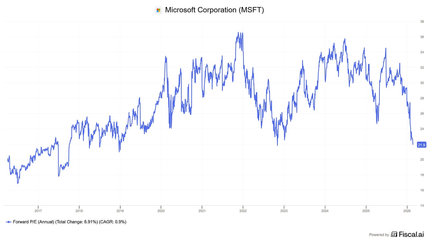 Across Windows, Office, security, developer tools, and cloud, Microsoft is deeply embedded into the operating system of global business. The switching costs at scale are enormous. From a technical, financial, and political perspective inside organizations.