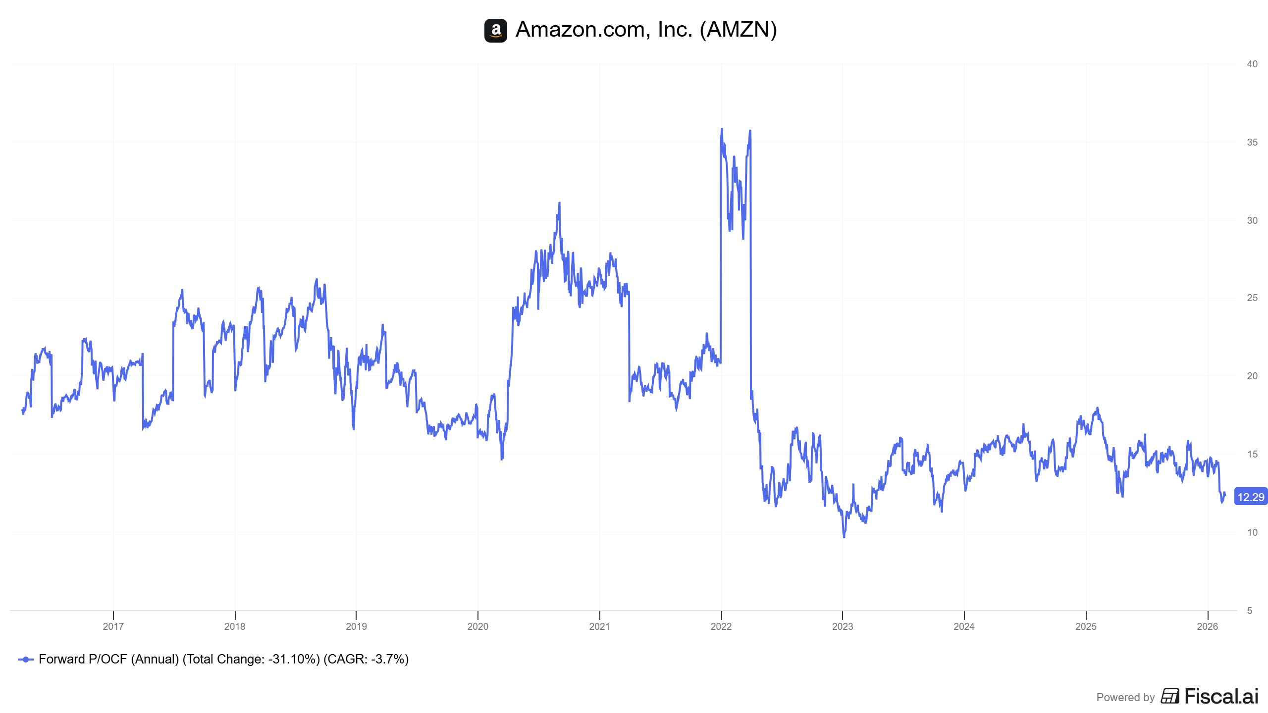 Despite the reaccelleration of AWS and other business segments, Amazon continues to trade at attractive rates.