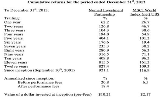 Youâve probably never even heard of it. They thrived for 13 years, giving finance enthusiasts much to learn. Their fund, the Nomad Investment Partnership, returned 921% before closing voluntarily. And this is compared to just 117% for the MSCI World Index over the same period.