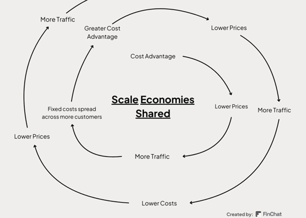 Customer-first economics: Businesses like Costco pass scale benefits to customers, building an extensive moat.