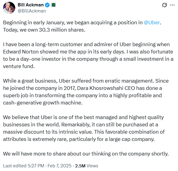 Ackman sees a massive opportunity in Uber, praising the CEO Dara Khosrowshahi for turning Uber into a “highly profitable and cash-generative growth machine”: