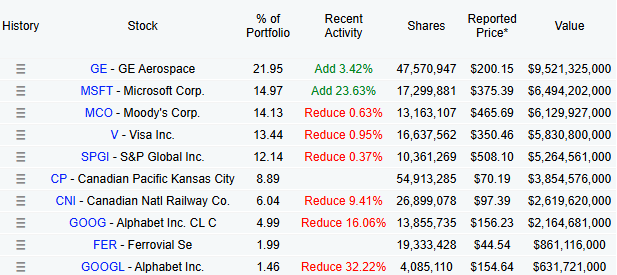 Trimming 16.21% to his Canadian National railway, now 9.41% of the portfolio.