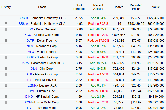 The most interesting move from Bloomstran this quarter is his increase in Dollar Tree and reduction in Dollar General. To me, this clearly indicates that he prefers Dollar Tree and believes the opportunity here is larger than in Dollar General.