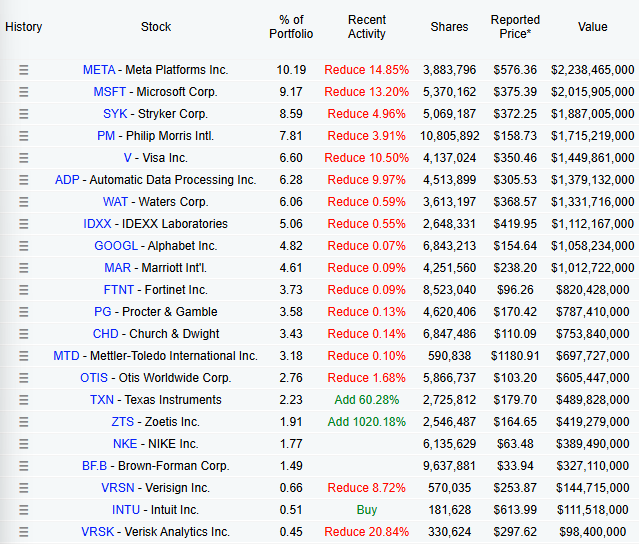 Microsoft was reduced by 13.20%, to 9.17% of the portfolio.