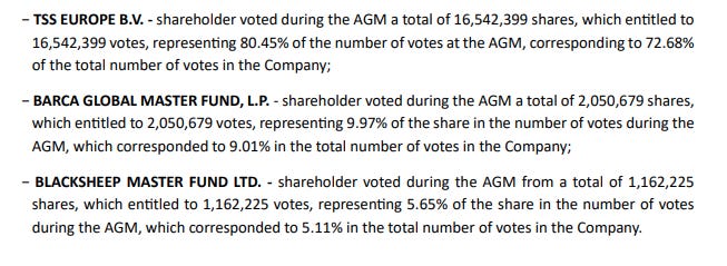 The largest shareholder and controlling owner of Sygnity is TSS Europe, part of the Constellation Software ecosystem. TSS represents 72.68% of the total number of votes in Sygnity.