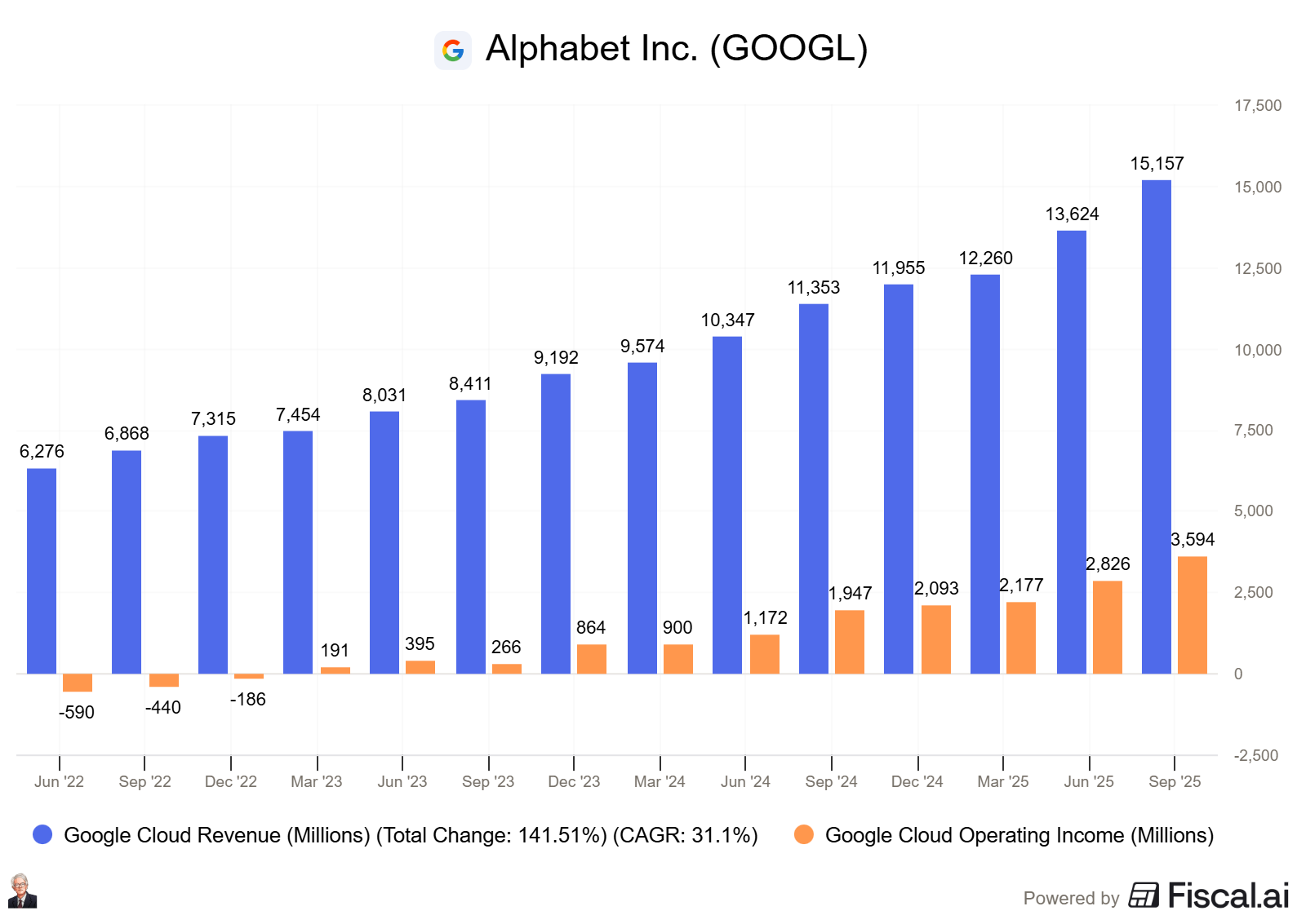 Google Cloud grew rapidly (often 30%+ YoY), helped by AI infrastructure spending. Cloud growth also has operating leverage, where operating income is growing faster than the top line. Q2 2025 operating margins were 20.7%, and Q3 2025 operating margins were 23.7%. This is an incredible business segment within Alphabet.
