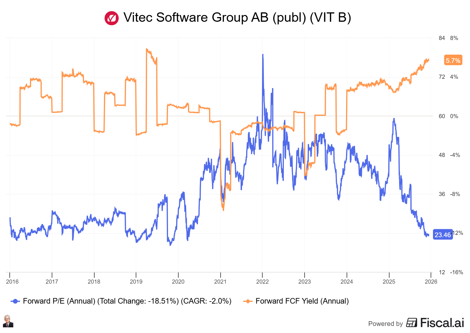 Vitec trades at a multiple that reflects its recurring revenue quality, durable margins, and long acquisition runway. It’s not a deep value multiple, but levels typically paid for high-quality vertical software with predictable cash flows.
