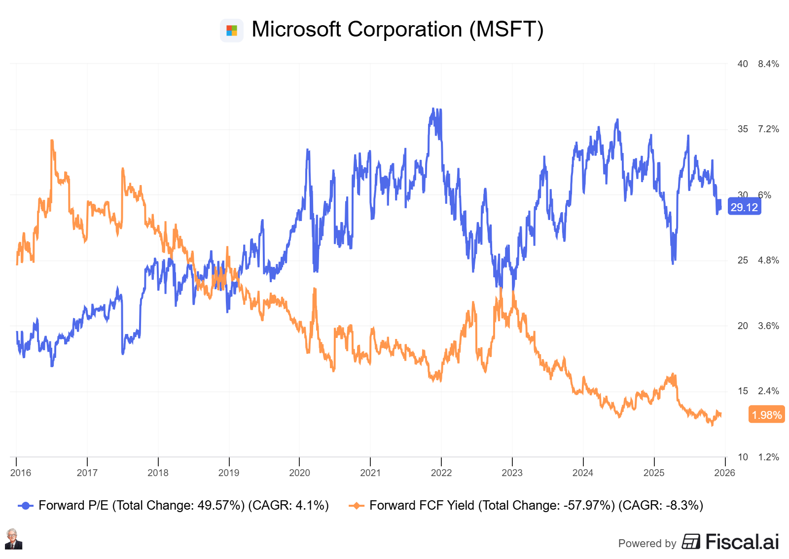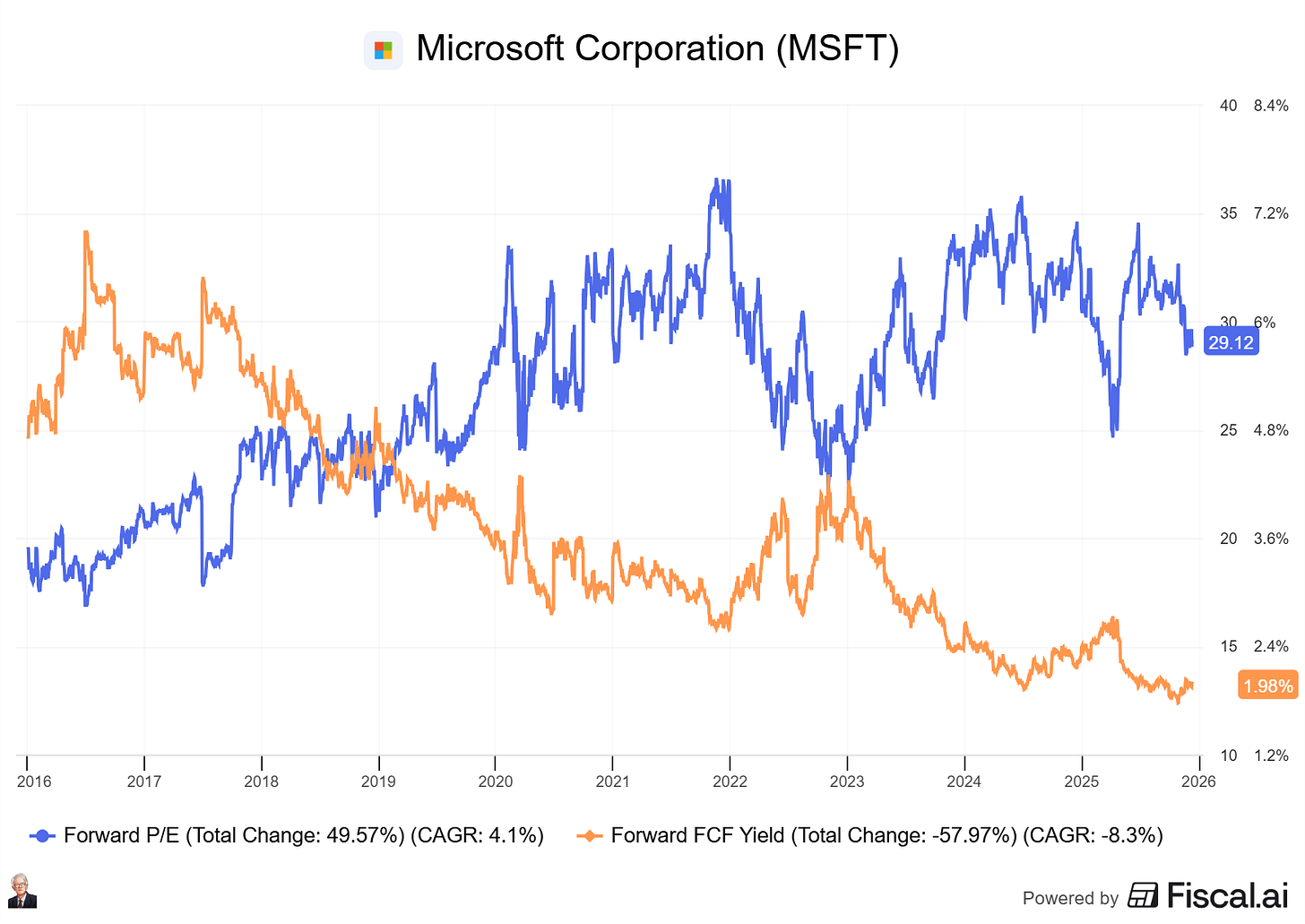 That said, Microsoft cannot be considered cheap with a current Forward PE of 29x and a FCF yield of 1.98%. While not unreasonable, it is close to its top multiple levels.