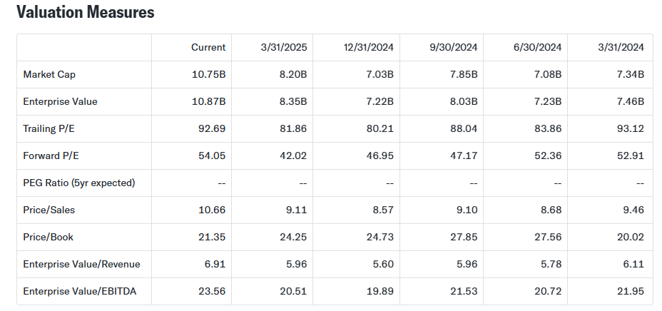 Topicus trades at a trailing P/E of 92.69x and a forward P/E of 54.05x, as of 15 July 2025. Moreover, its current stock price (TOITF) is USD129.