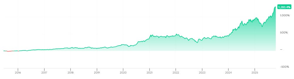 The business has returned +1283.4% for shareholders in the last 10 years, that’s a 28.8% CAGR.