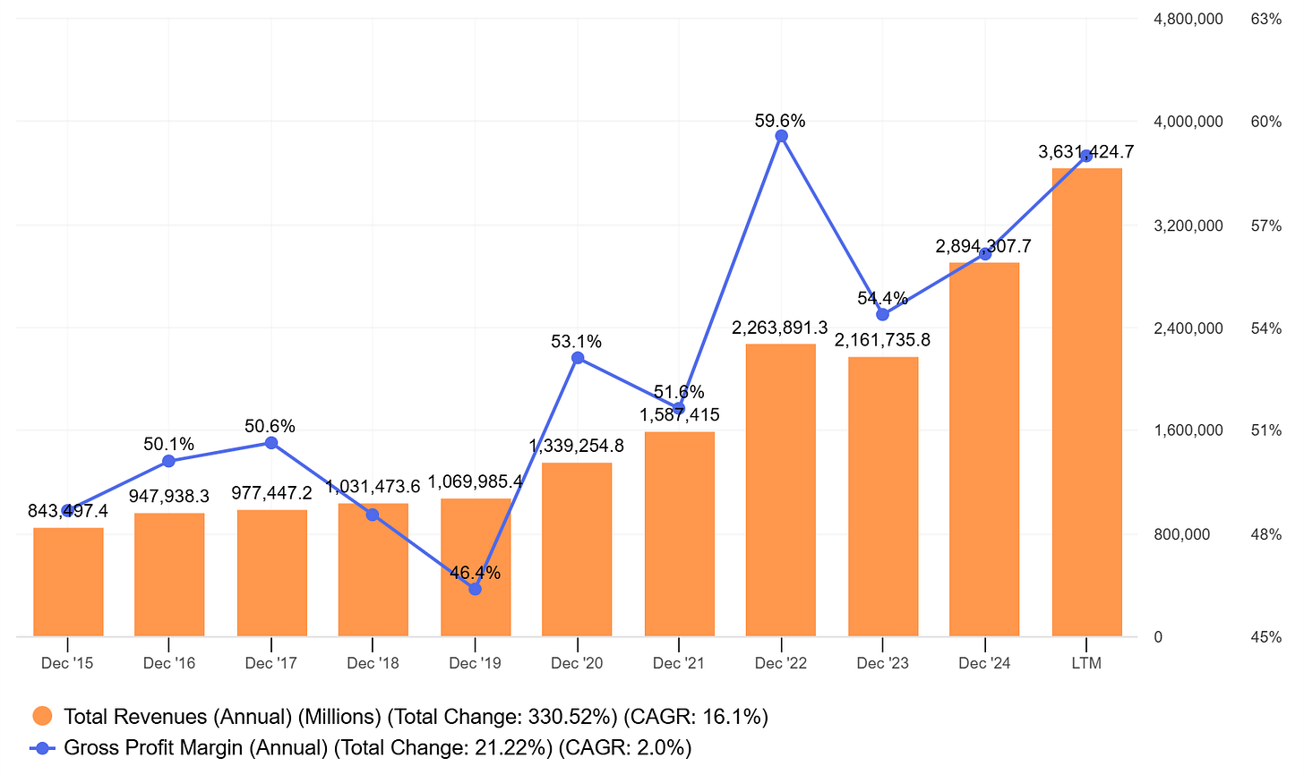 In the last 5 years, growth has been incredible, but the best part is that margins and return on invested capital have expanded, showcasing the strong moat and unique value proposition TSMC has.