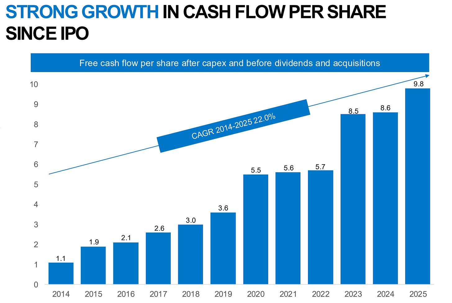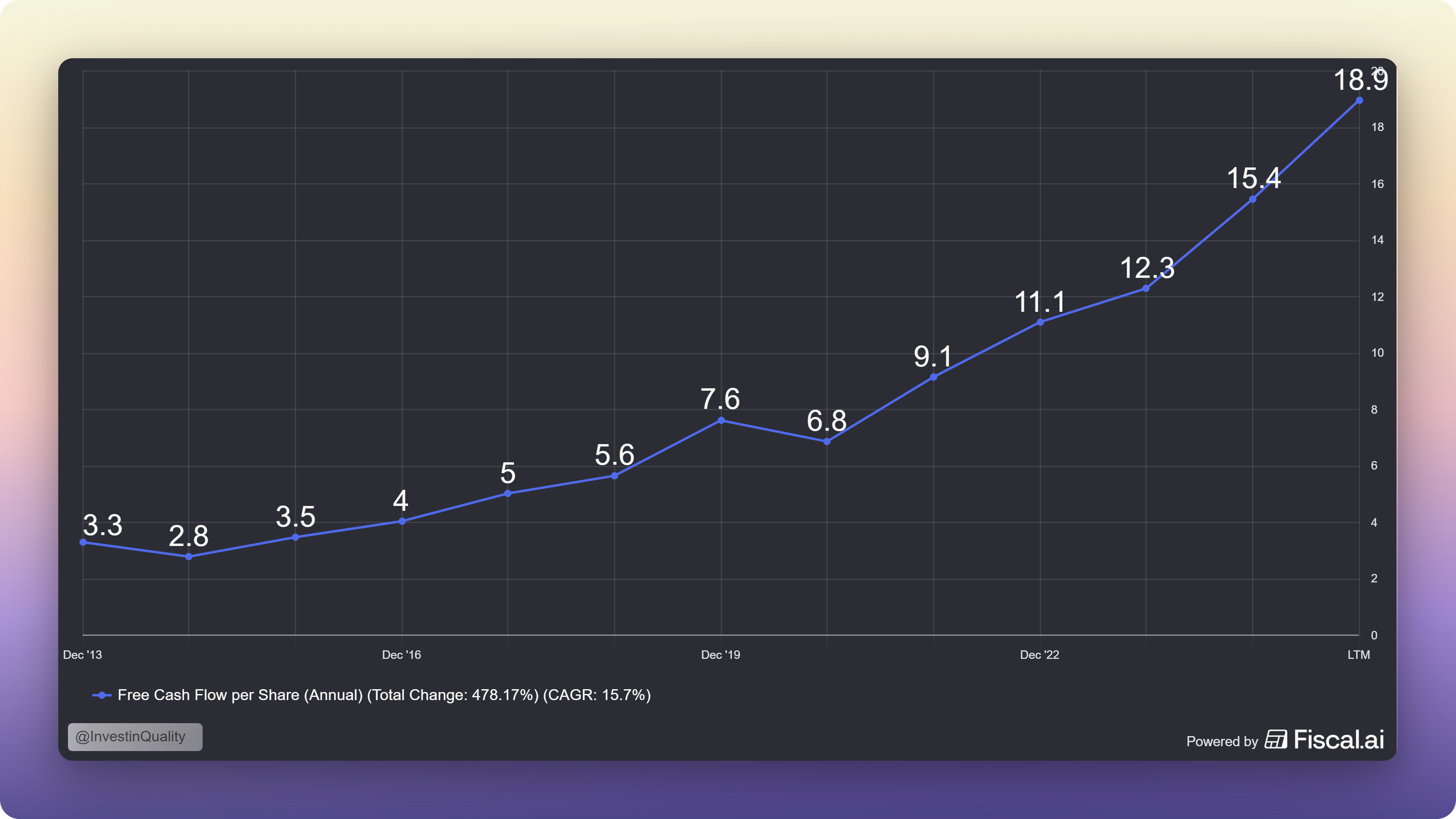 The result? +30.7% annual growth in free cash flow per share since 2014: