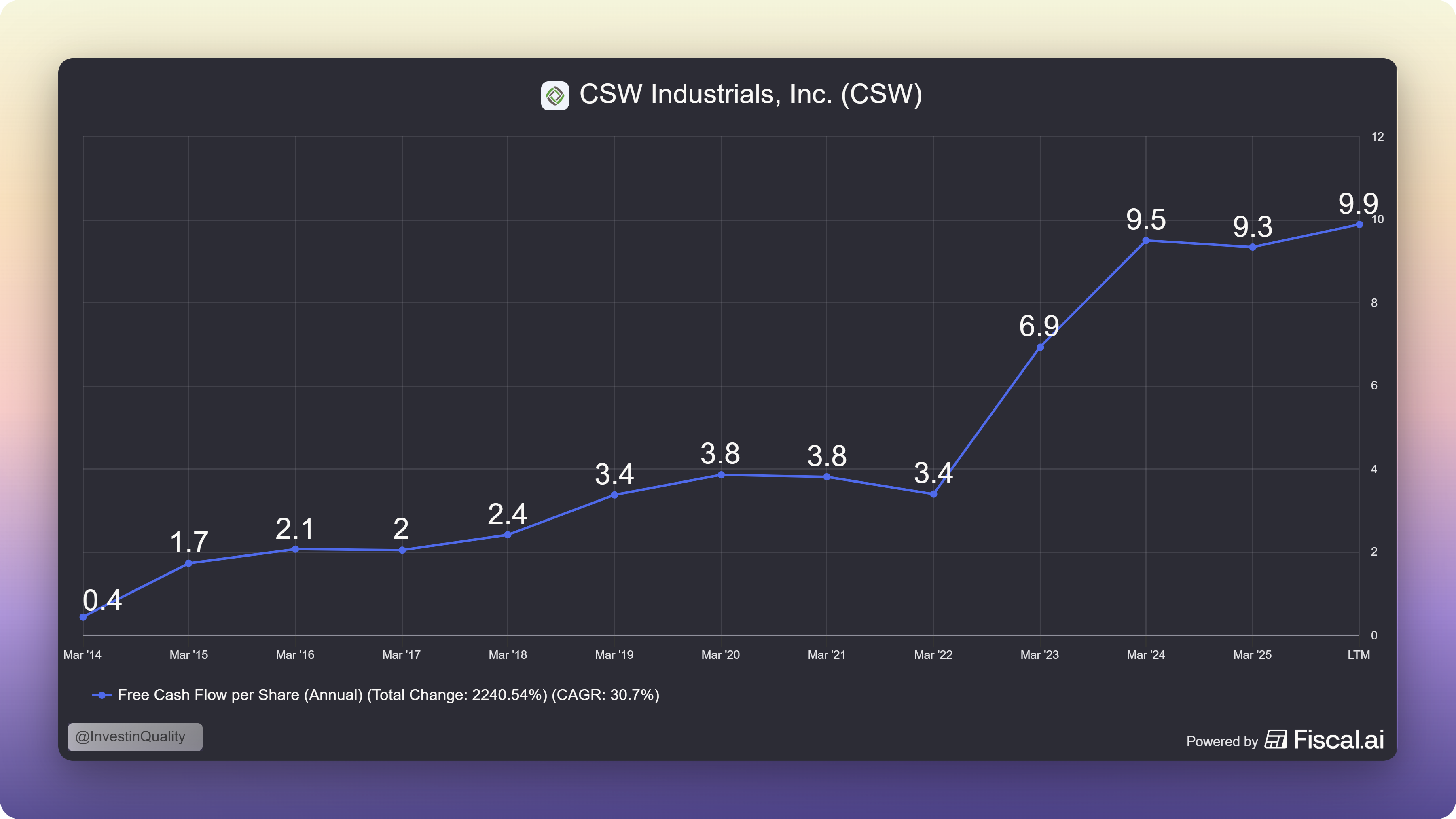 CSW Industrials makes products like HVAC dampers, plumbing solutions, and industrial sealants. Not exciting. But in the specific segments it occupies, it has dominant market share, 45% gross margins, and a customer base that has been buying from it for decades.